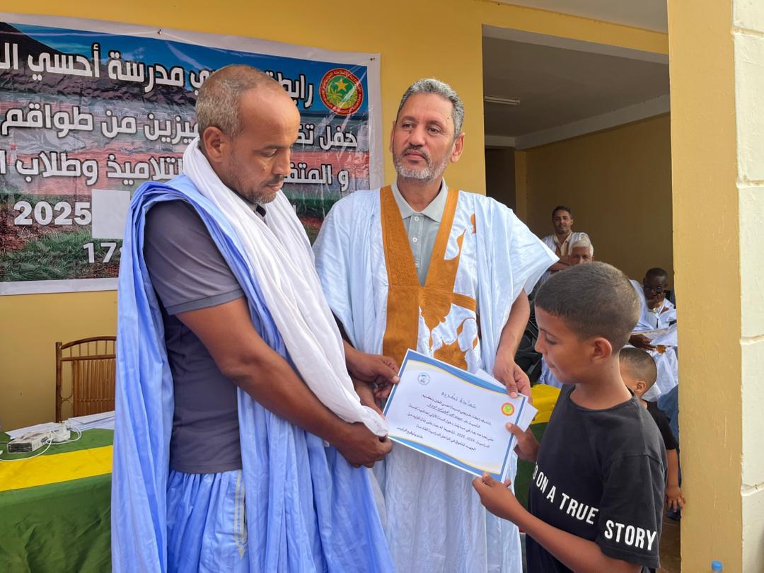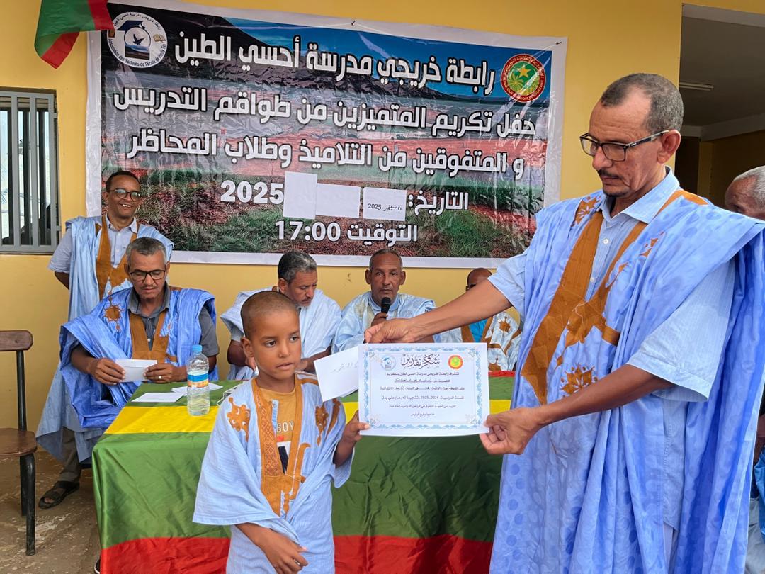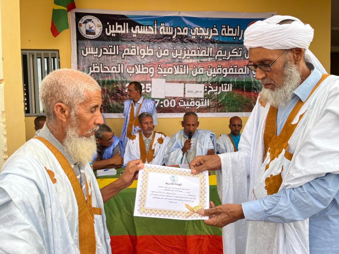 نظمت رابطة خريجي مدرسة احسي الطين مساء السبت 6 سبتمبر 2025،حفلا لتكريم المتميزين من المدرسين وشيوخ المحاظر والمتفوقين من التلاميذ في أقسام التجاوز وجميع الناجحين في مسابقتي دخول السنة الاولى إعدادية وشهادة الاعدادية على مستوى قرية احسي الطين والثلاثة الأوائل على مستوى كل محظرة من محاظر القرية.