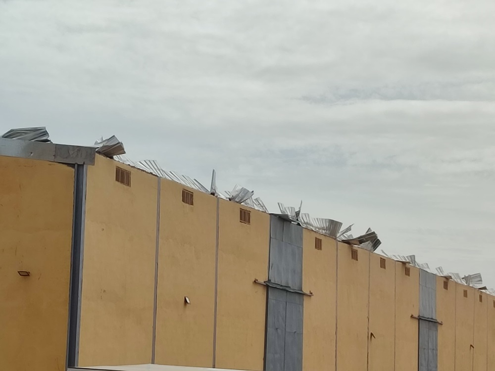 عاصفة فعلت بهذه المخازن نفس ما فعلته باعرشة البسطاء في المدينة بل ان بعض اخبية الفقراء المجاورين للمخزن قد صمدت امام هذه الرياح.