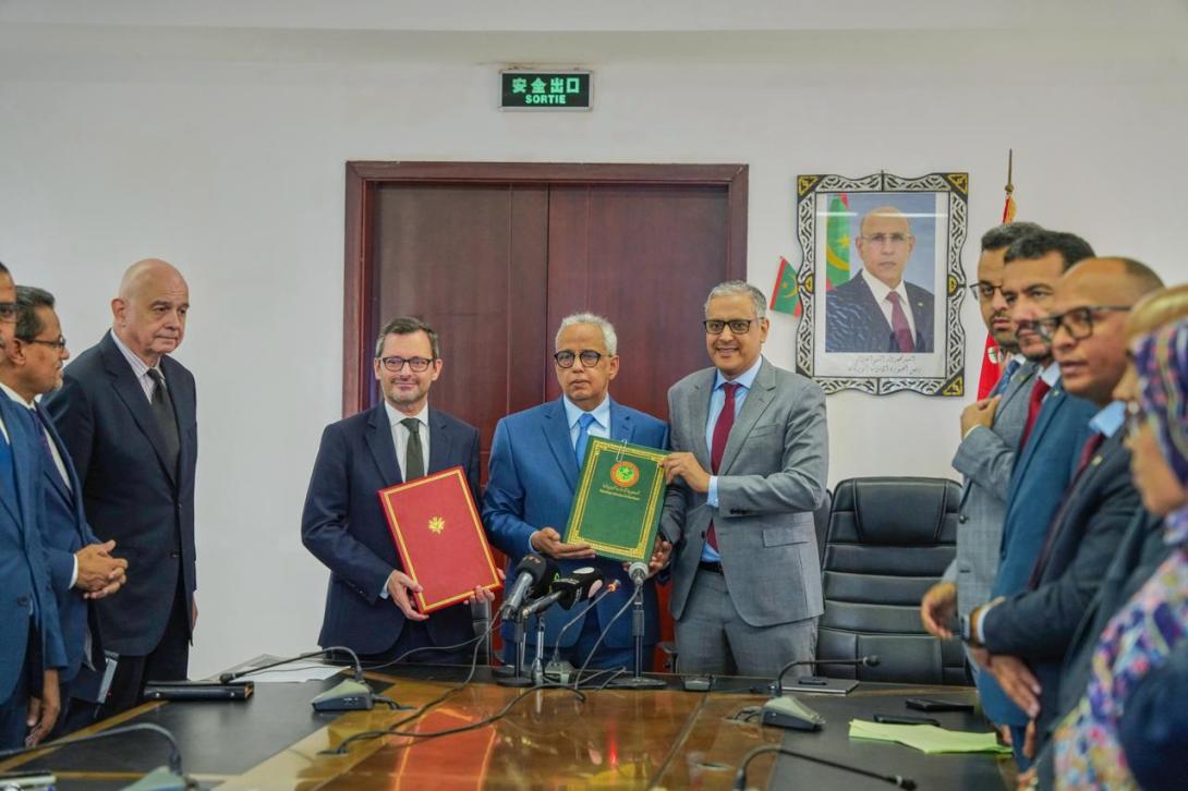 ووقع الاتفاقية عن الجانب الموريتاني وزير الشؤون الاقتصادية والتنمية عبد الله ولد سليمان ولد الشيخ سيديا وعن الجانب الفرنسي سفير باريس في نواكشوط إيمانويل بيسنييه، وذلك بحضور وزير الطاقة والنفط محمد ولد خالد.