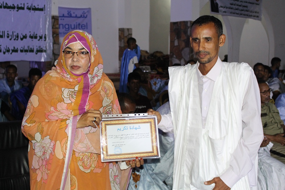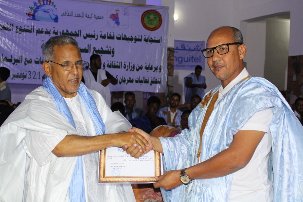 رئيس المهرجان الأديب الكبير أب عال ولد آكجيل في كلمة الاختتام عبر عن سعادته بنجاح المهرجان رغم الظروف غير المواتية وشكر وزارة الثقافة على ما قدمت من دعم وتسهيلات وأسدى تشكراته لجميع من ساهم في هذا العمل الثقافي سواء سلطات إدارية أم بلدية أو أمنية ،مبرزا أن أيام المهرجان جسدت تنوع البلاد الثقافي ووحدتها الوطنية.