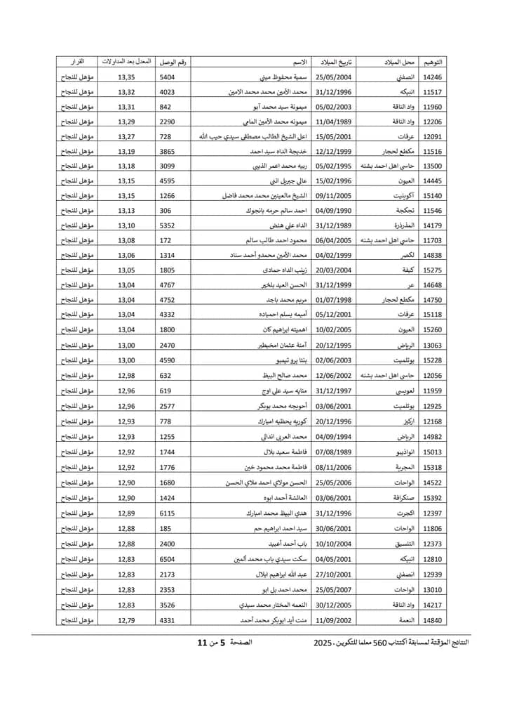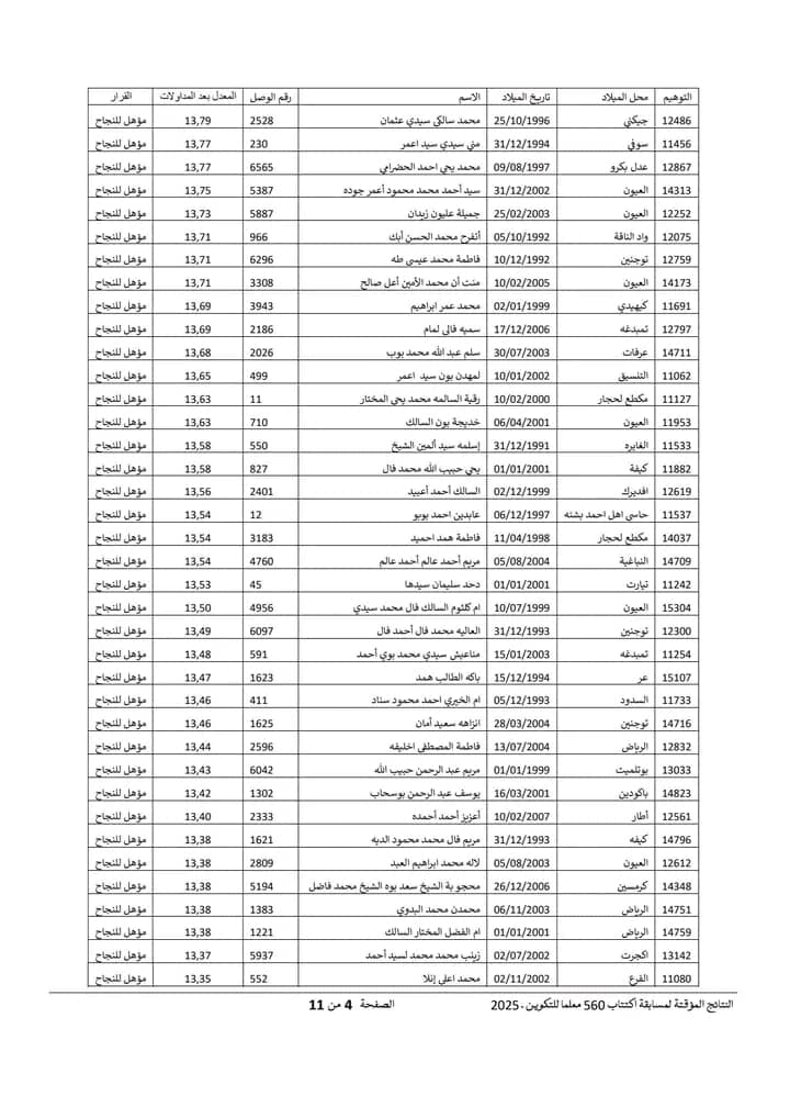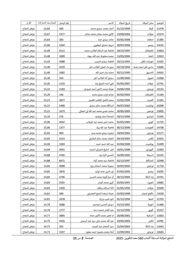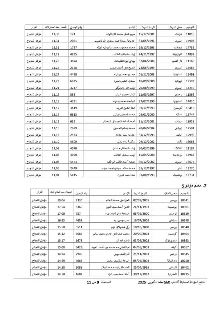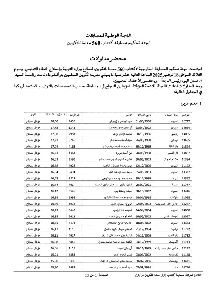 Nov 18 / التعليقات إعلان نتائج مسابقة مقدمي خدمات التعليم لسنة 2025 أعلنت وزارة التربية وإصلاح النظام التعليمي عن نتائج مسابقة مقدمي خدمات التعليم لسنة 2025.وتتيح هذه النتائج للمشاركين في المسابقة الاطلاع على أسماء الناجحين والناجحات الذين سيتم دمجهم ضمن الطواقم التربوية في مختلف المؤسسات التعليمية الوطنية. https://www.education.gov.mr/ar/node/1047 ثلاثاء, 2025/11/18 - 20:12 إضافة تعليق جديد اسمك التعليق About text formats Restricted HTML وسوم إتش.تي.إم.إل المسموح بها: <a href hreflang> <em> <strong> <cite> <blockquote cite> <code> <ul type> <ol start type> <li> <dl> <dt> <dd> <h2 id> <h3 id> <h4 id> <h5 id> <h6 id> تفصل السطور و الفقرات تلقائيا. Web page addresses and email addresses turn into links automatically.