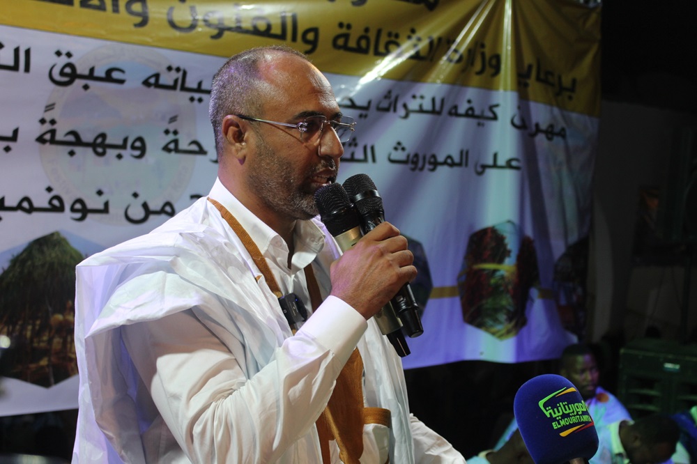 وفي كلمة له خلال الافتتاح، شكر رئيس المهرجان السيد ولد أوه ولد ابيسيف جميع من ساهم في انجاز هذا العمل الثقافي وأكد أن هذه الفعاليات تأتي لتعريف الجمهور بقيمة التراث وأصالته، وتوفير منصّة للحرفيين لعرض منتجاتهم، ودعم استدامة الصناعات التقليدية. كما يتضمّن المهرجان أمسيات شعرية وندوات ثقافية تستعرض تاريخ المنطقة وتراثها.