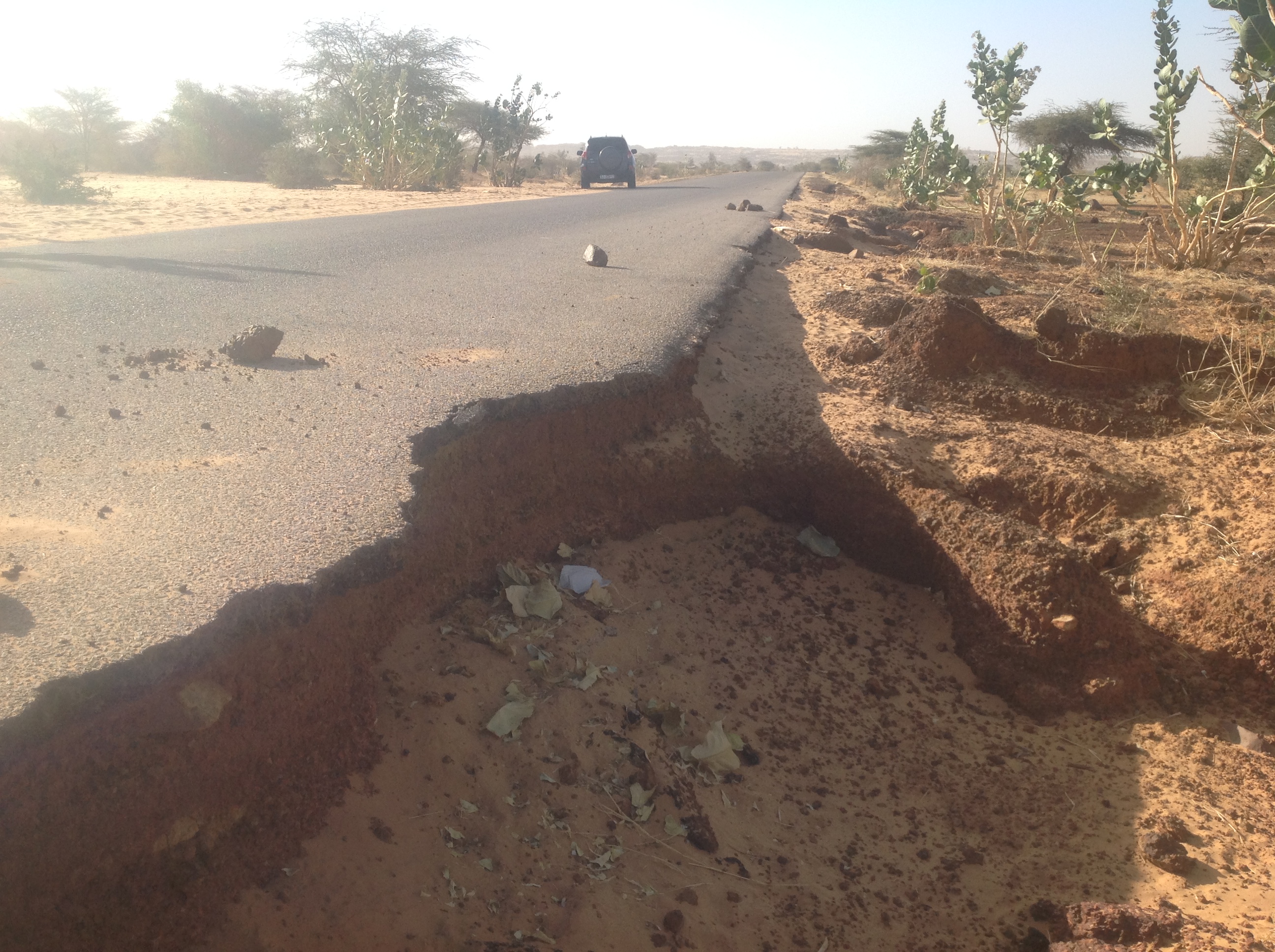 الأعطاب في عشرات النقاط على هذ الطريق خاصة في الجسور والأرضيات المدعمة، غير أن الكلم 45 عند بلدة "أمريشيت أهل الواقف" بات خطرا جسيما على المستخدمين ؛ إذ جرفت السيول الحافة الغربية من الطريق ولم يبق سالكا غير مترين.