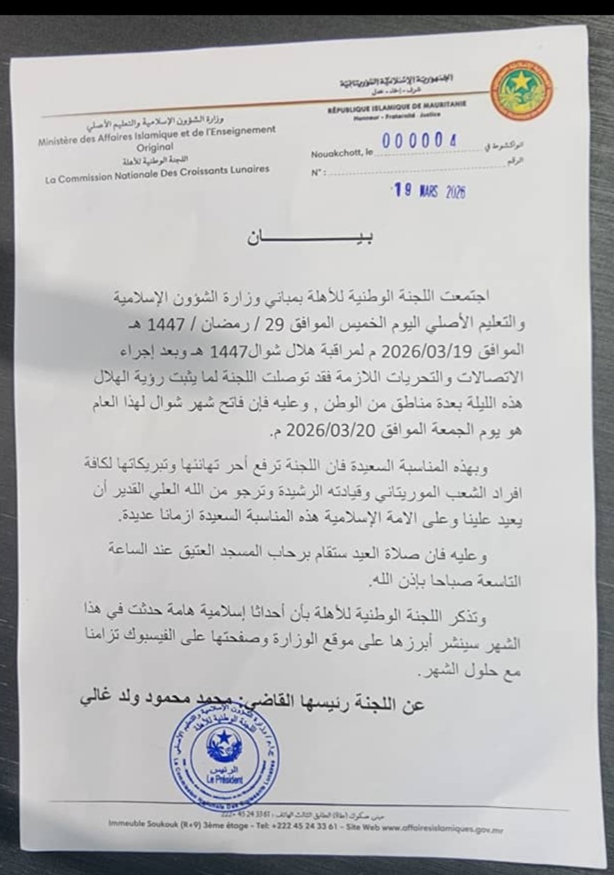 أعلنت لجنة مراقبة الأهلة أن يوم غد الجمعة هو أول أيام عيد الفطر المبارك للعام الهجري 1447